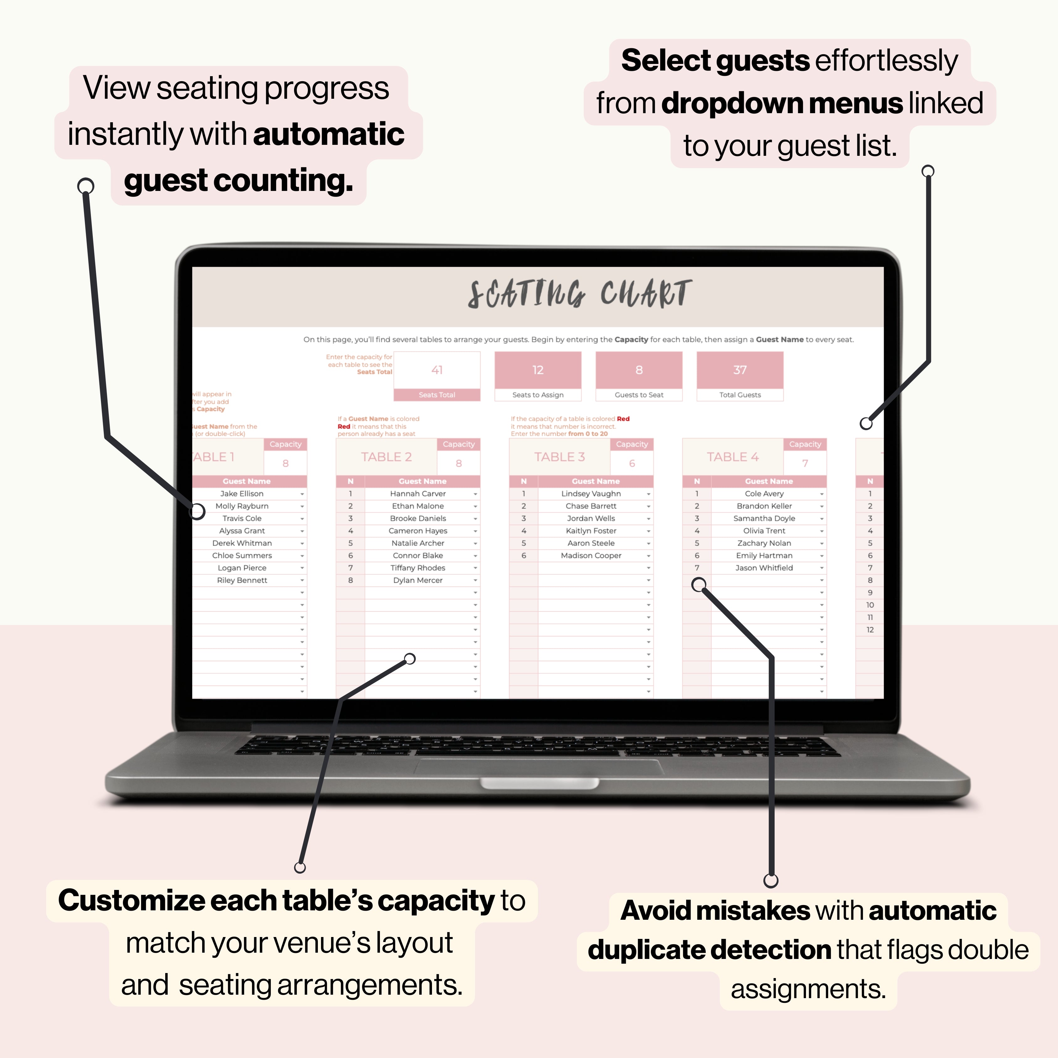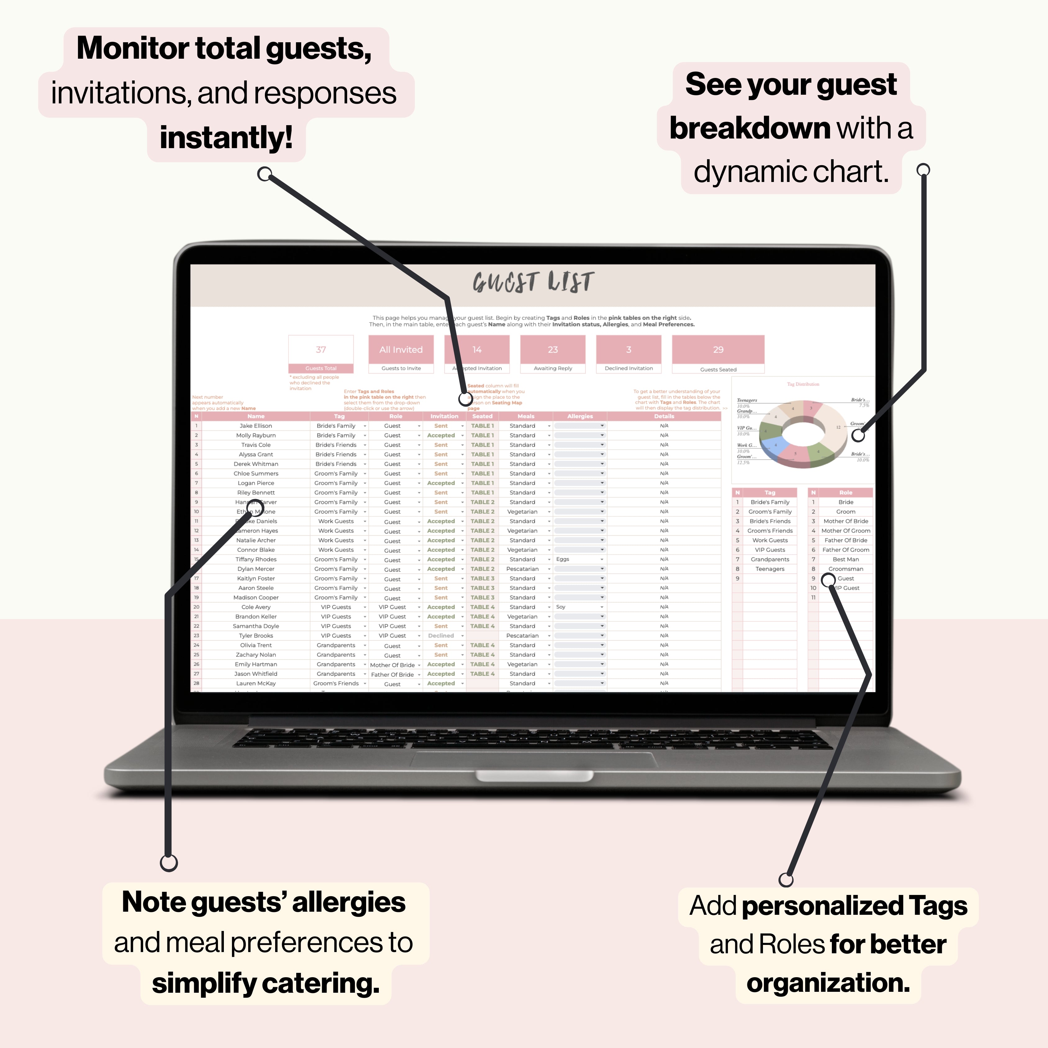 Yes, it works for any wedding size. Whether you’re planning a small gathering of 20 or a big celebration of 500, the planner automatically adjusts to your needs and keeps everything easy to manage.